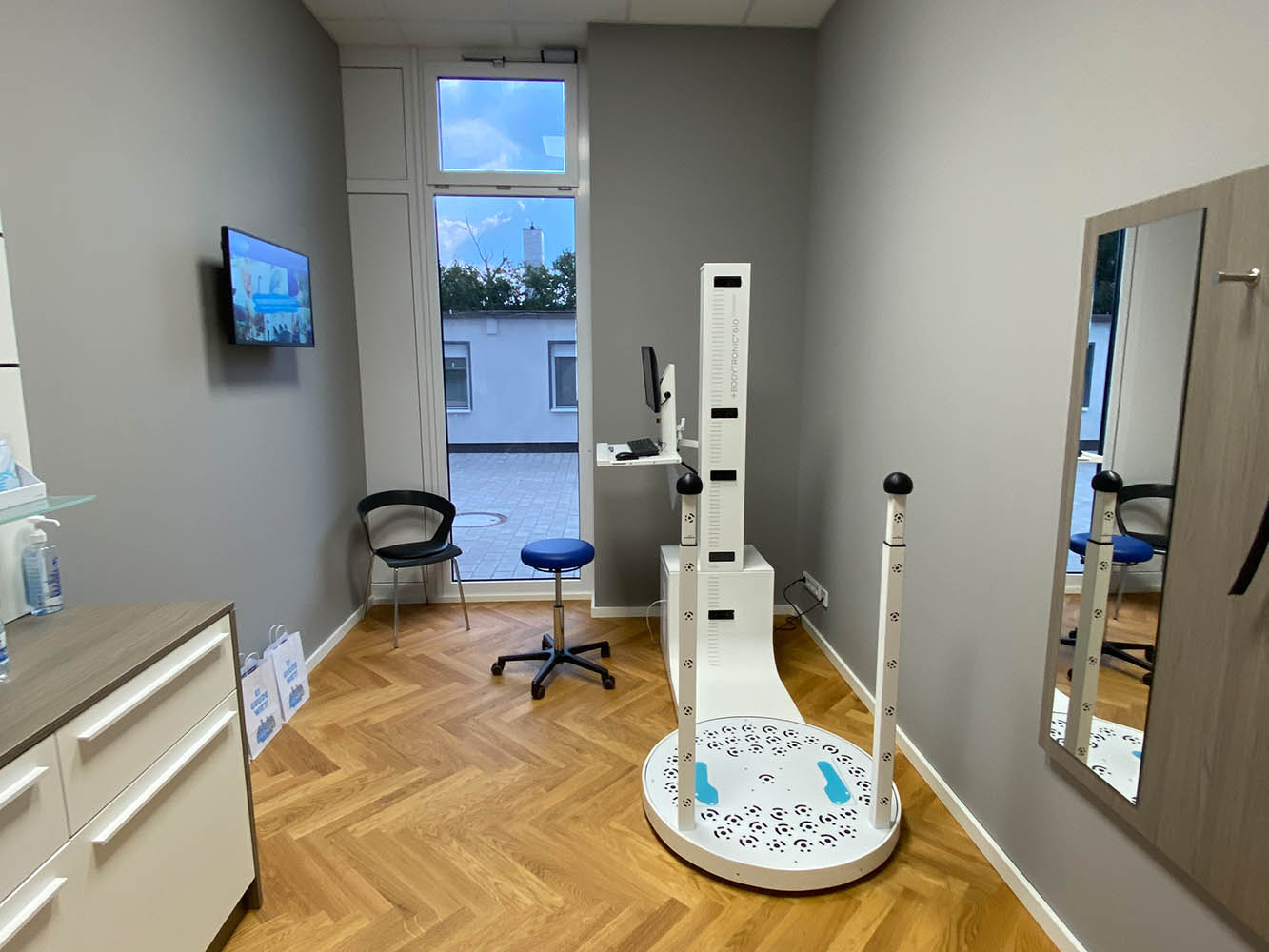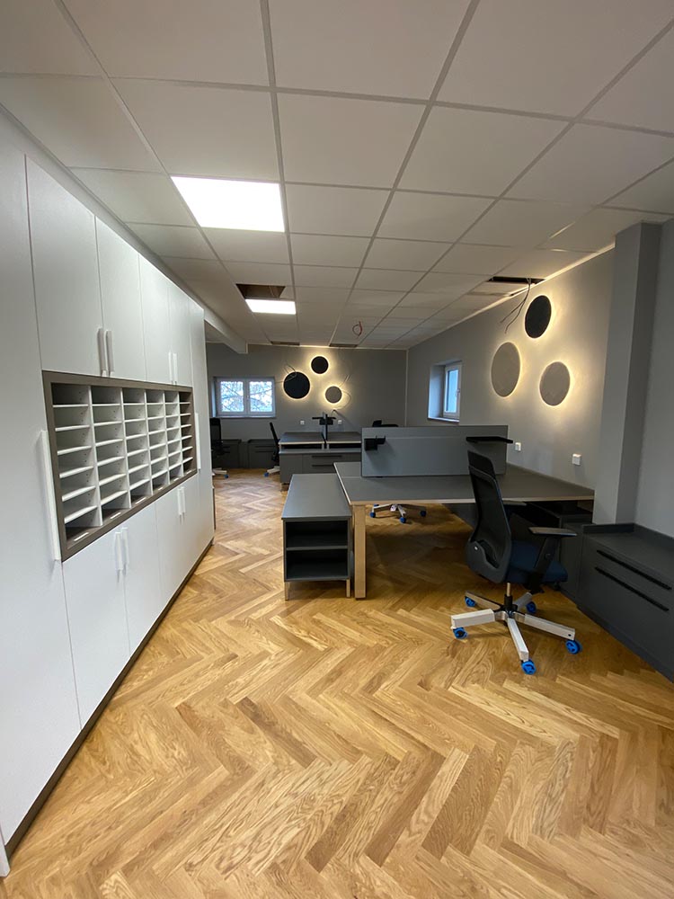 Neben den Verkaufsflächen wurden auch spezialisierte Funktionsräume realisiert. Räume zur Vermessung, Anprobe und Anpassung bieten diskrete und komfortable Bedingungen für individuelle Versorgungen. Ergänzend dazu entstanden moderne Besprechungsräume sowie funktional gestaltete Bürobereiche, die effiziente Arbeitsabläufe unterstützen.