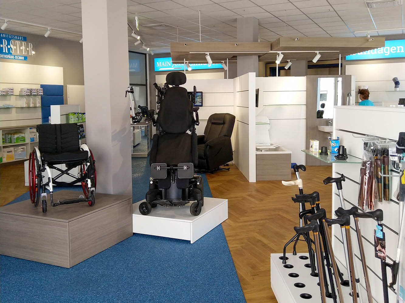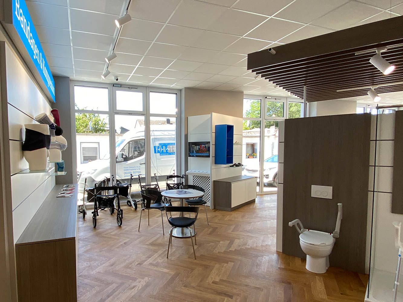 Das Sanitätshaus Förster in Frankfurt wurde durch Bäuerlein Objektdesign im Rahmen eines umfassenden Projekts im Bereich Orthopädiebau und Ladenbau bis zur Fertigstellung realisiert. Ziel war es, ein modernes, barrierefreies Sanitätshaus zu schaffen, das sowohl funktionale Anforderungen erfüllt als auch eine einladende Atmosphäre für Kund:innen bietet.