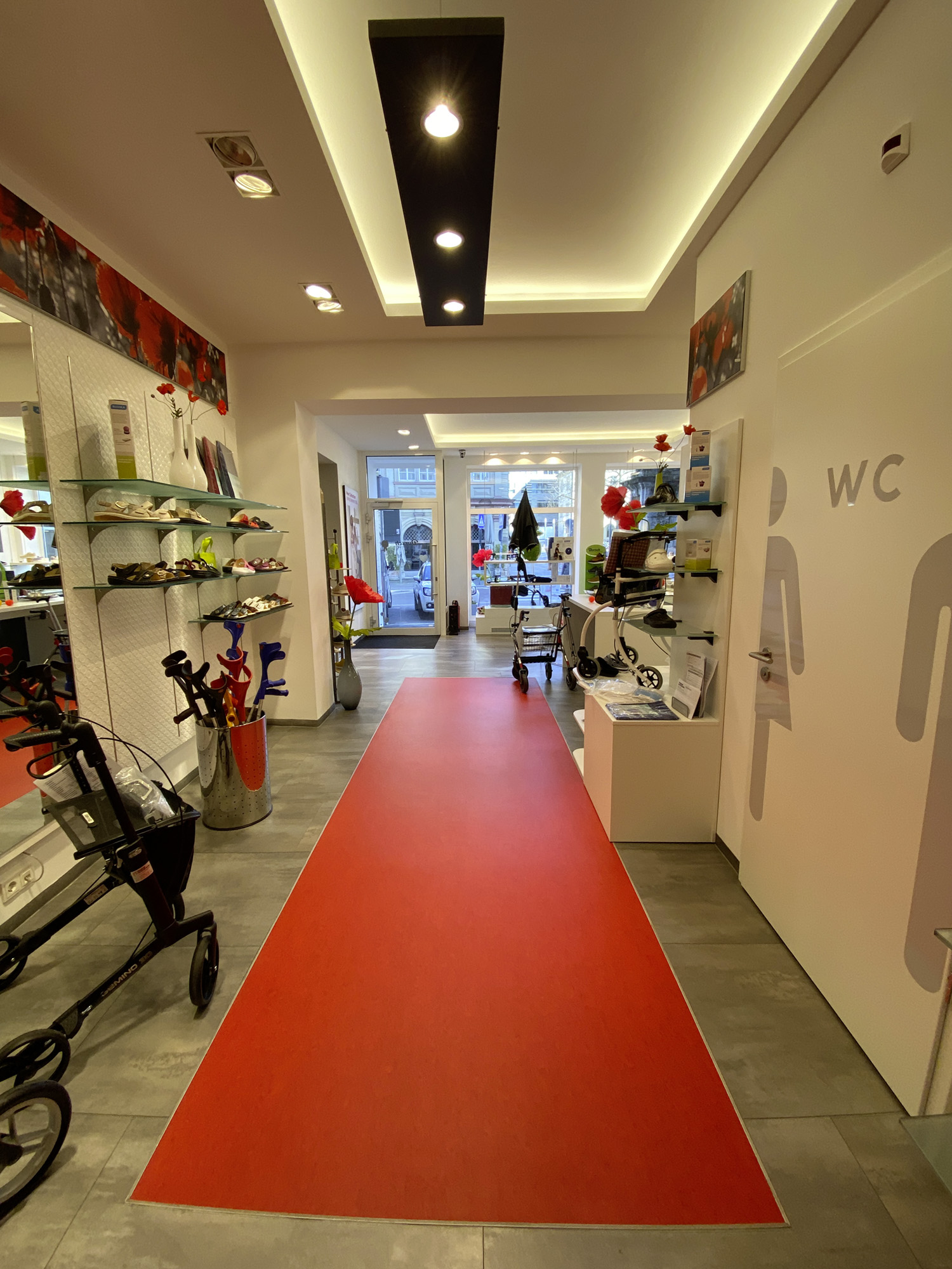 Ein zentrales Element des Projekts ist die barrierefreie Maßkabine, die speziell für die individuelle Anpassung orthopädischer Hilfsmittel konzipiert wurde. Sie bietet eine diskrete, ergonomische und professionelle Umgebung für Beratung und Versorgung und erfüllt damit höchste Anforderungen im modernen Sanitätshaus.