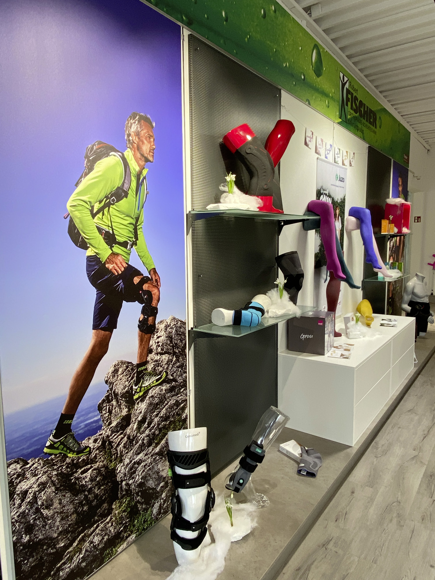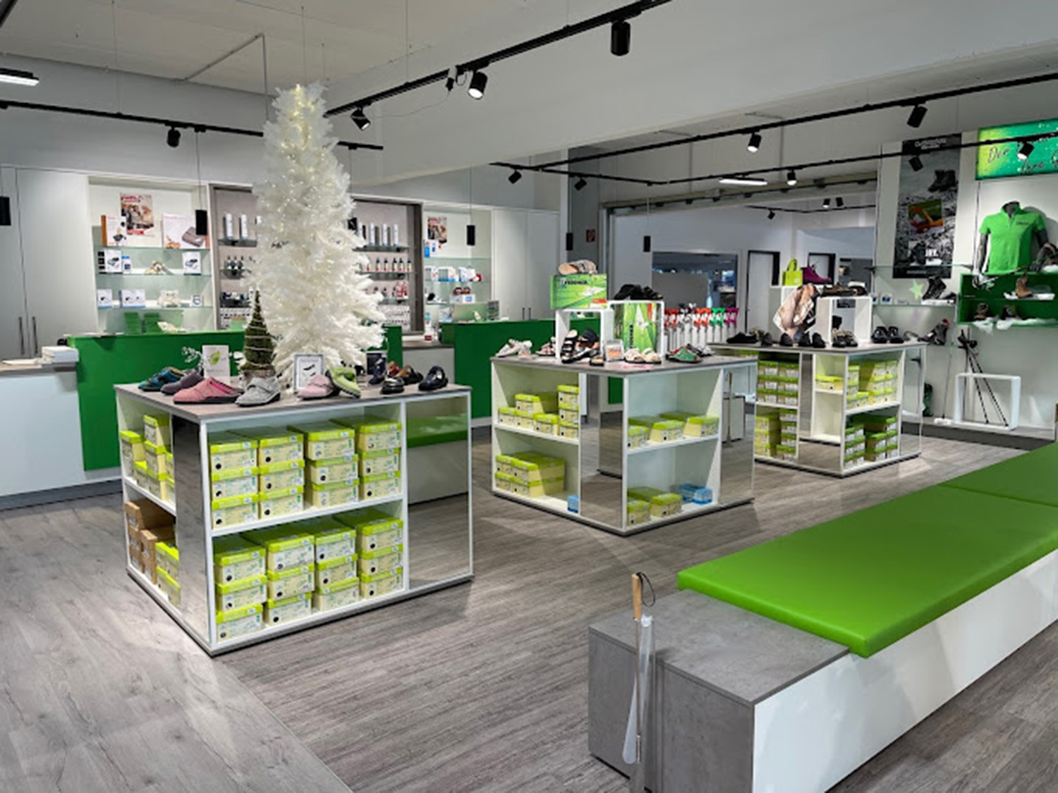 Auch gestalterisch wurde ein klarer, moderner Ansatz verfolgt. Hochwertige Materialien, eine reduzierte Formensprache und ein abgestimmtes Farbkonzept schaffen eine vertrauensvolle Atmosphäre, die den Anforderungen eines Sanitätshauses optimal entspricht.