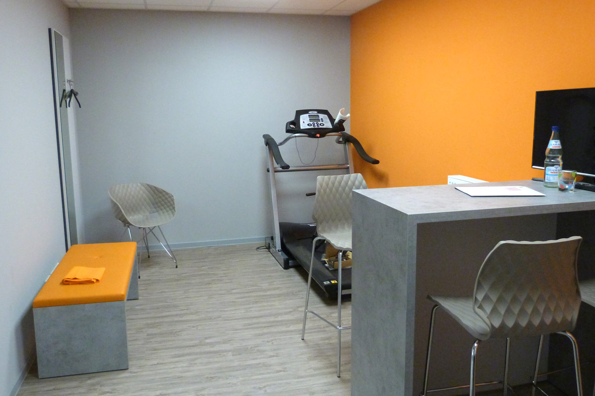 Der hochwertige Innenausbau wurde konsequent im Corporate Design realisiert. Neben der individuell konzipierten Maßkabine zur Anpassung von Einlagen und orthopädischen Schuhen wurde ein behindertengerechter WC-Bereich integriert. So entstand ein moderner Ladenbau, der Funktionalität, Design und Nutzerorientierung im Orthopädiebau optimal vereint.